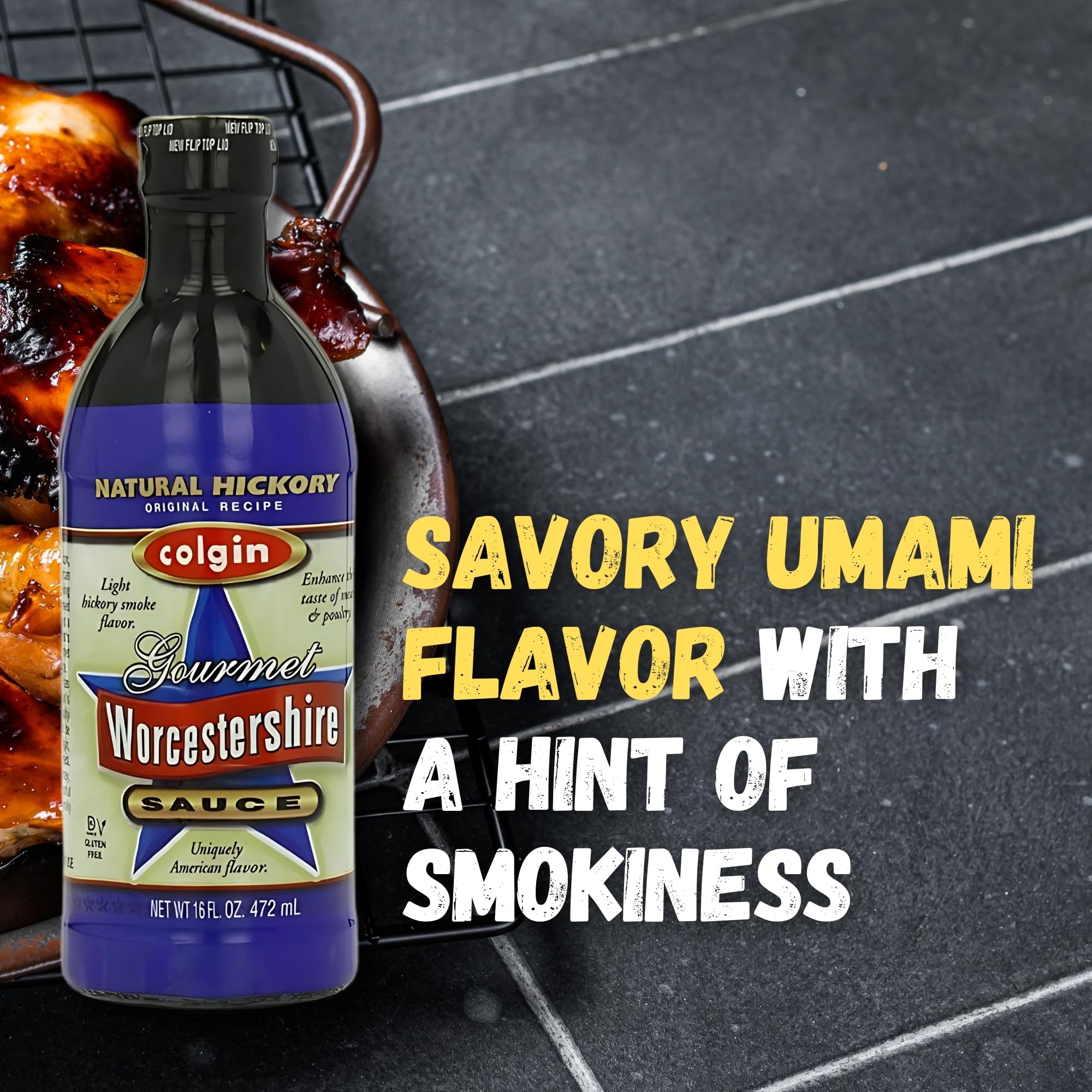 Colgin Hickory Flavored Worcestershire Sauce (16 oz) for Home Cooks & BBQ Enthusiasts | Organic Worcestershire Sauce for BBQ, Marinades, & Sauces (1 pack)