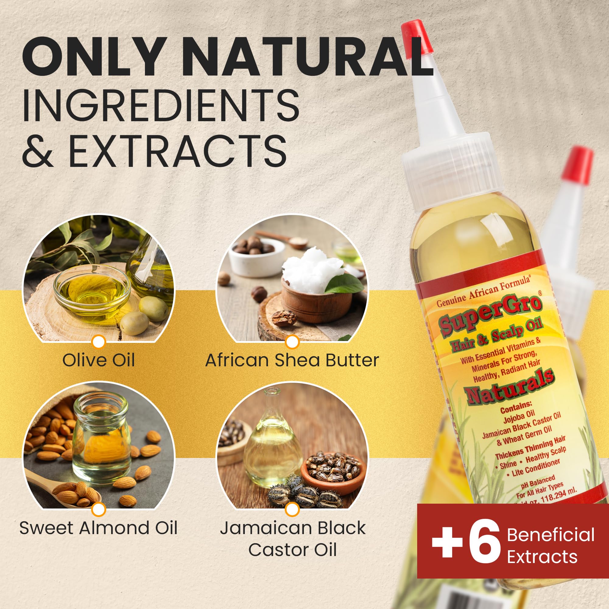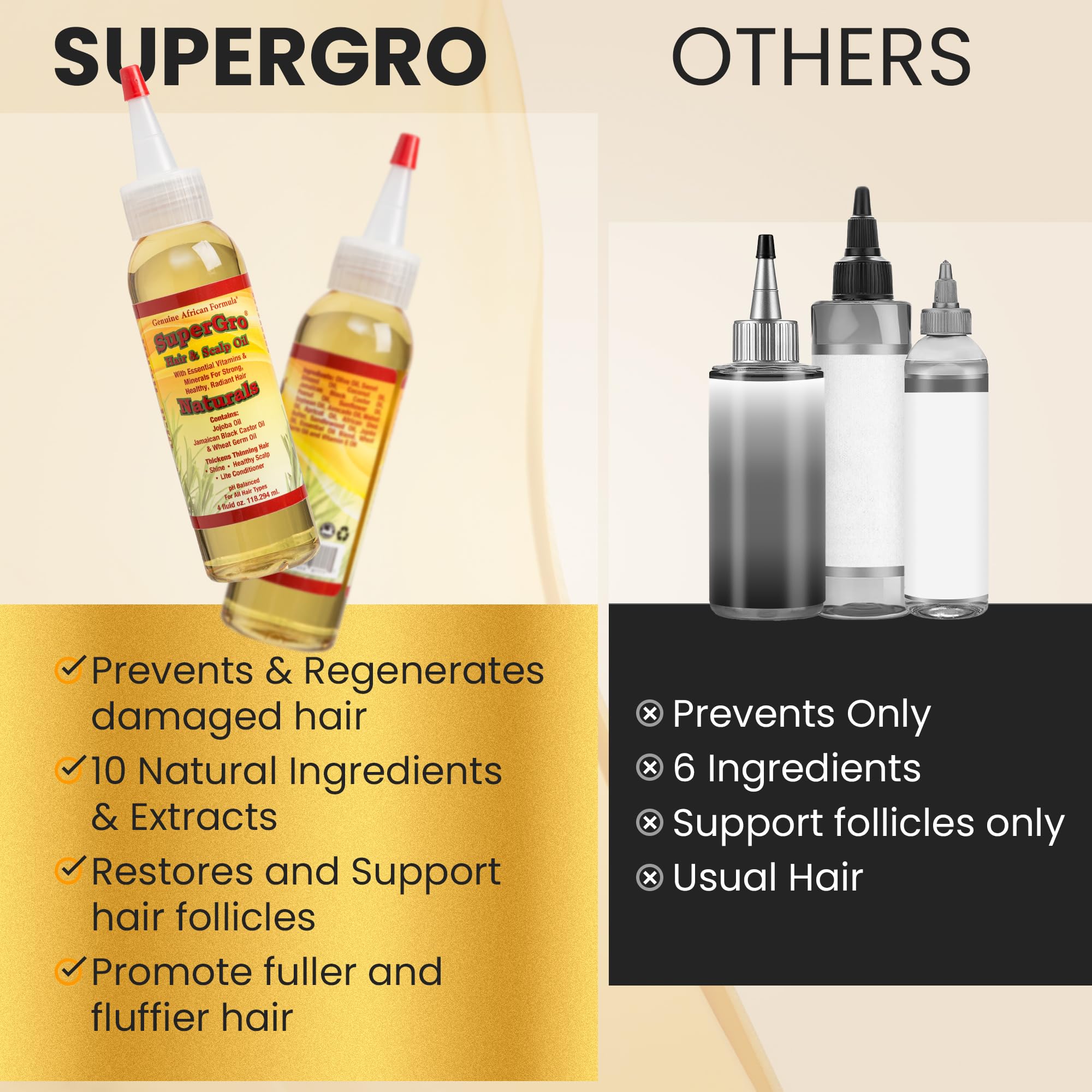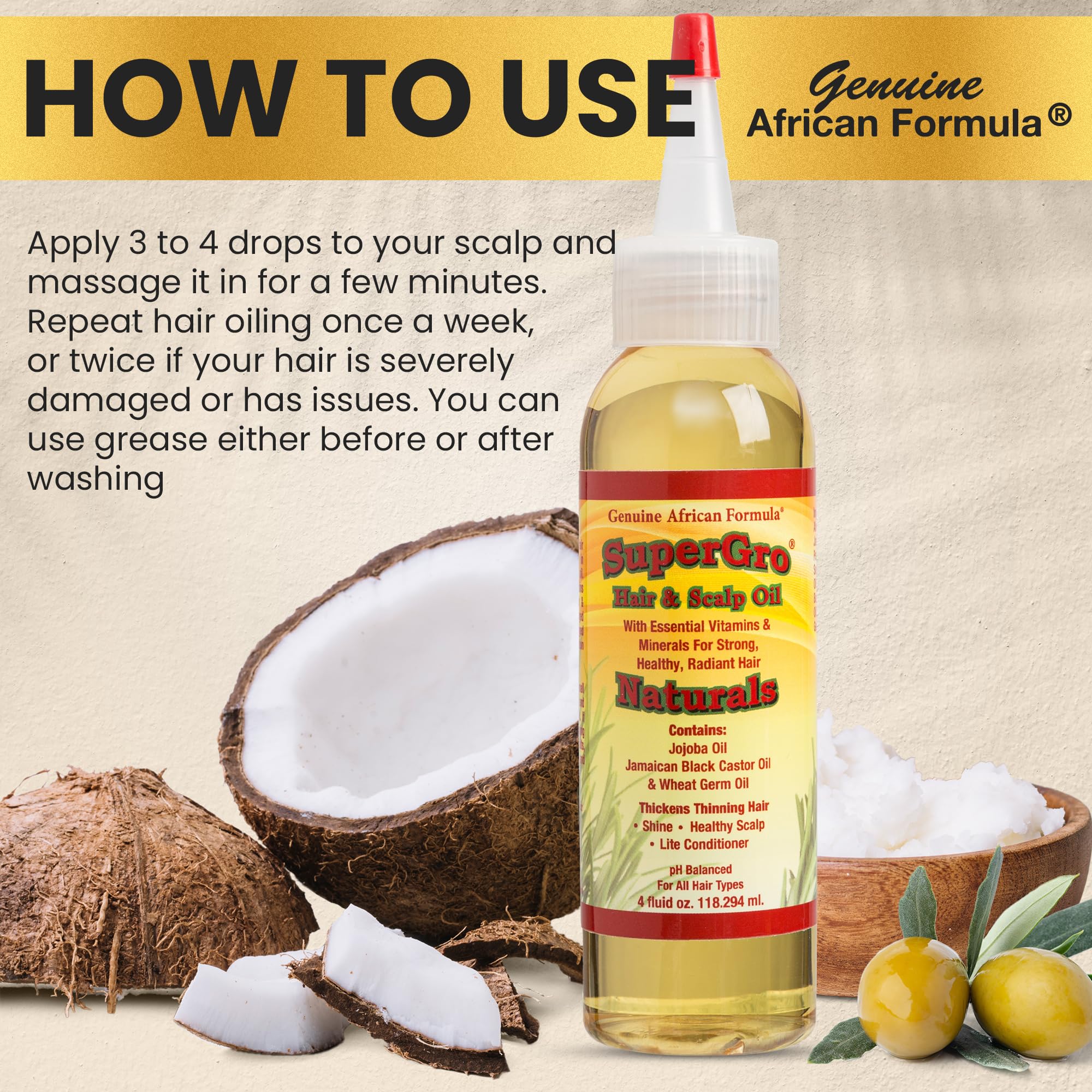 SuperGro Hair & Scalp Oil for Moisturizing, Strengthening, Nourishing, Shinning – Black Castor Light Serum Blend for Dry Scalp and Growth – For Women & Men – Grow, Care Oil 4 oz